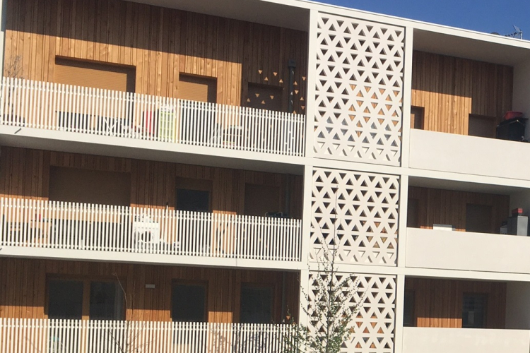 Contenus gauche InfosInfos ChantierType de bâtiment: Logements, 2 ERP (1 crèche) R+5Type de chantier: NeufNombre de logements: 90Nombre de menuiseries: 404 Equipe projetMaître d'ouvrage: Gironde HabitatMaître d'oeuvre: Flint ArchitecteEntreprise Générale: SEG FAYATAgence Les Zelles: Agence Sud Ouest